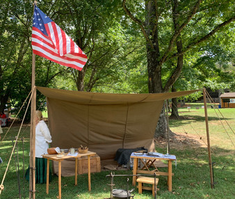 A replica of an 1828 Cherokee encampment was constructed outside the park’s visitor center. Attendees could explore a wedge tent and a lean-to kitchen area featuring period-specific utensils and dining items. Other demonstrations in the encampment area included blowguns, darts, and campfire cooking.
